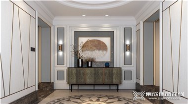 新中客餐玄关背景|顶墙柜一体 雅致天成……