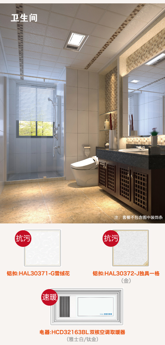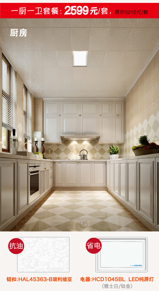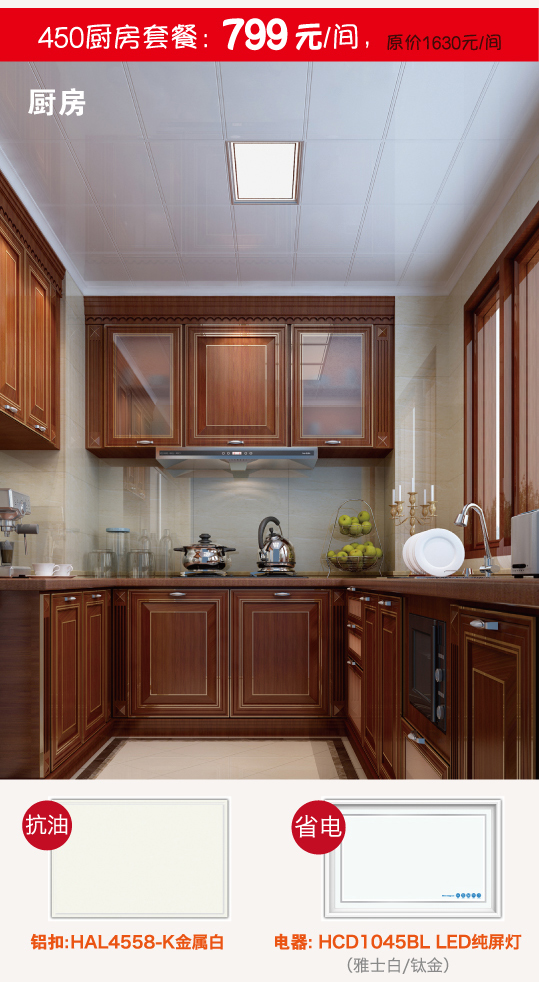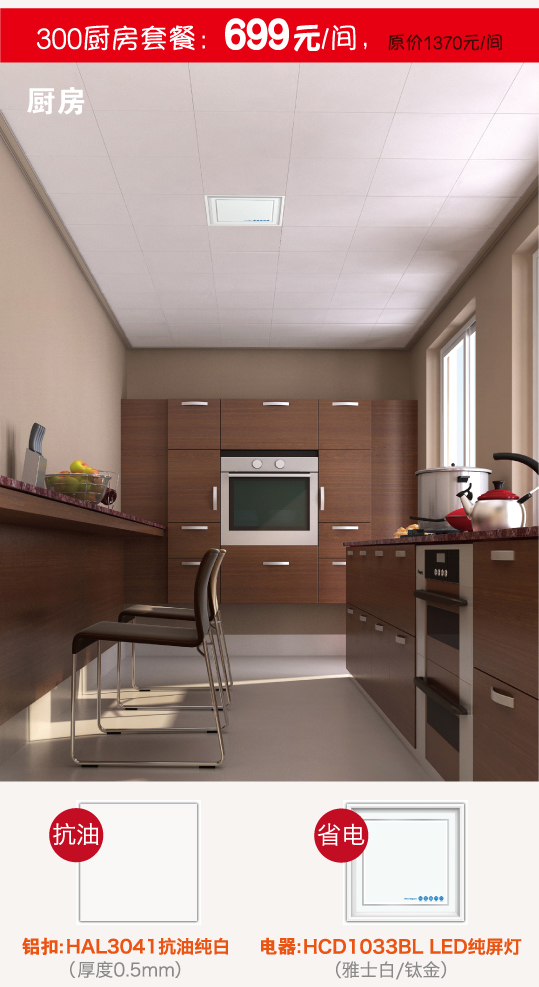 注:厨房和卫生间单间面积按4.05平米计算,超出部分按店内折扣价计算,特价板与厨卫套餐不同时享受。