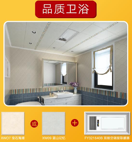 一厨一卫8平方套餐原价4480,现价2399。抗油板材全面对抗厨房油污,轻奢夏威夷风格板材装点品质卫浴。