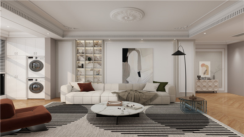 ▸ 简约雕花+哑光奶油肌理:弧型、方框、内嵌储物柜,形态不拘一格,3D立体线条勾勒小法式优雅,搭配无主灯设计,随手一拍都是ins风大片;
