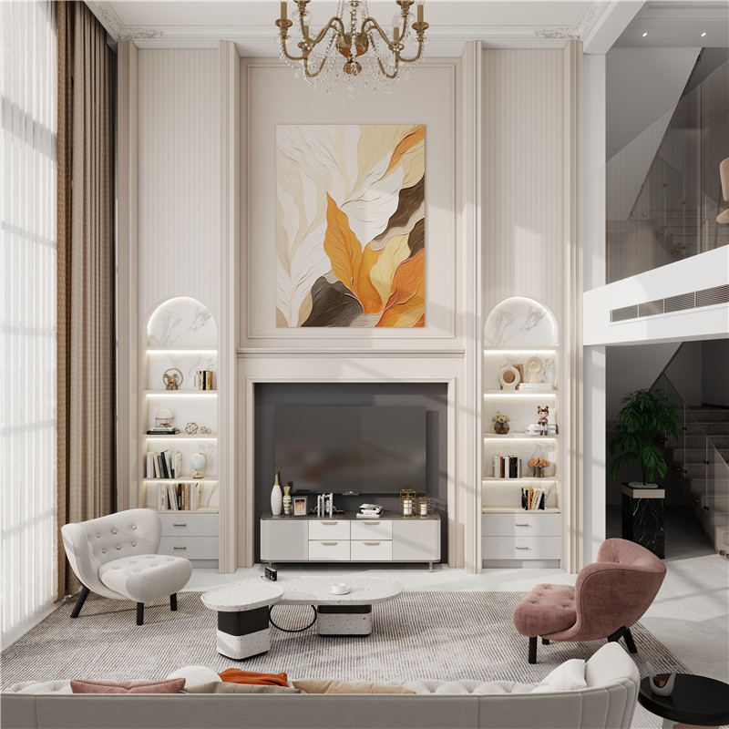 ▸ 内嵌储物格:或对称、非对称定制柜做内嵌,让陈列更抢眼,高调收纳展示,客厅时刻保持高级感。